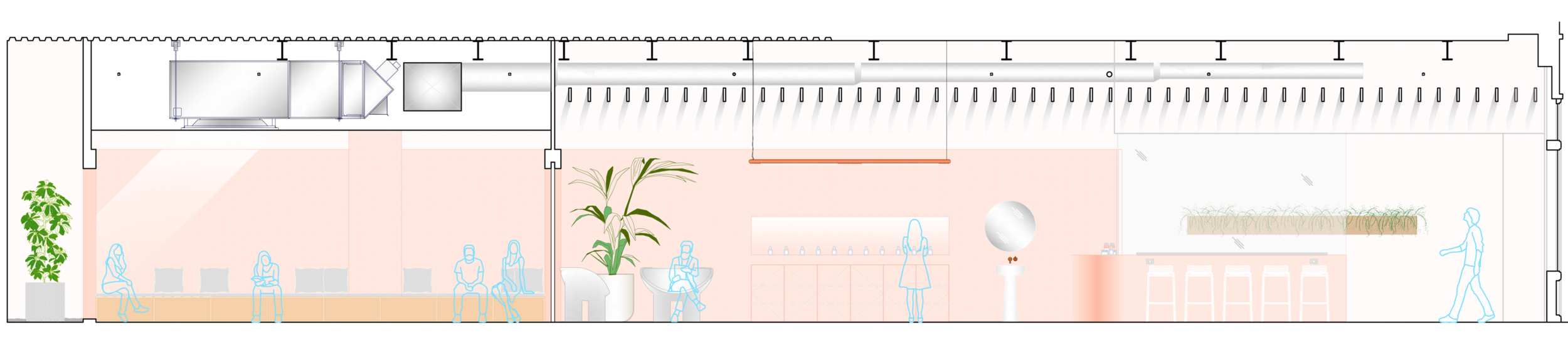 … then there's the CoeLux skylight. We’ve been lucky enough to be the first to provide it in a space accessible to the public in NYC. The science is rather complicated (and very much proprietary) but generally, its a combination of a super-powered LED, mirrors, and nanoparticles, all contained within a massive box suspended from the ceiling. We opted for the largest they have with the light fixed at a 45 degree angle which matches with the natural position of the sun relative to NYC. The company has begun to research the effects of the product with a few early studies suggesting that it could improve well-being in healthcare environments and senior facilities. As architects we are particularly intrigued by the implications of the technology, especially in a city as dense as New York where darkness and shadow is a constant issue.